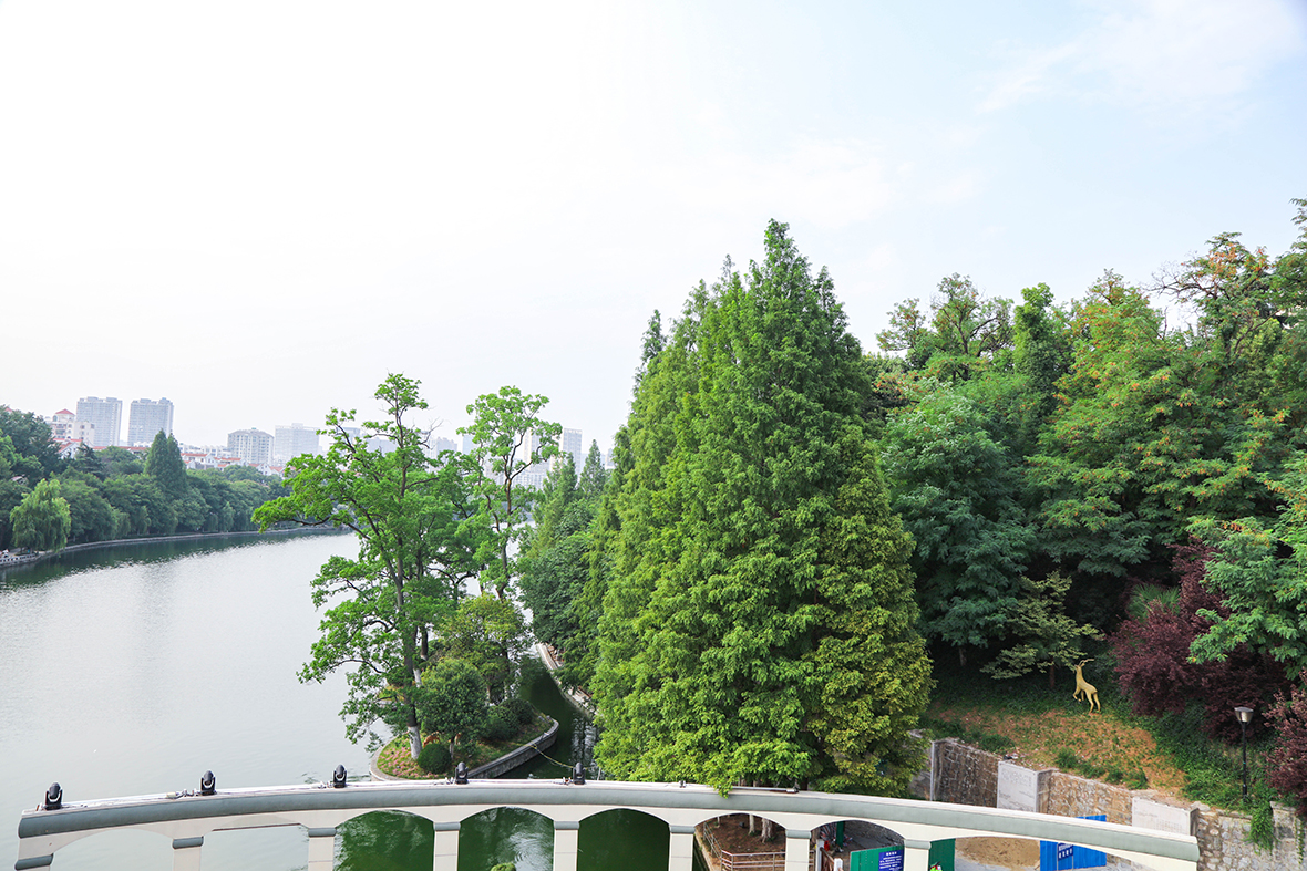 南半環水面開闊,以人工造景為主,精雕細刻,呈現清新秀雅的園林風光;北半環則以蒼郁的喬木林為主,樸實粗獷,呈現自然濃郁的山林野趣。在地勢起伏的西山景區,結合豐富的植物群落,塑有成群結隊的珍稀動物,形成自然生態野生動物雕塑群。